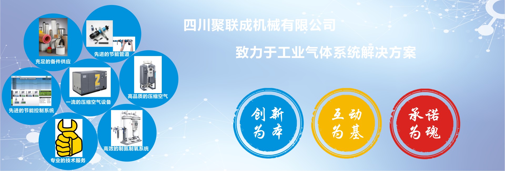 聚聯(lián)成一直致力于工業(yè)生產(chǎn)解決方案的系統(tǒng)供應(yīng)商我們憑借與Atlas Copco(阿特拉斯·科普柯)、BEKO(貝克歐)、GardnerDenver(格南登福工業(yè)集團(tuán))CompAir(康普艾)、同悅氣體等國際品牌之間的密切合作關(guān)系,我們的解決方案包括氣體壓縮機(jī)、氮氣氧氣設(shè)備、空氣處理系統(tǒng)、維護(hù)保養(yǎng)、通過專業(yè)的產(chǎn)品技術(shù)與高級服務(wù)工程師團(tuán)隊,具備專業(yè)的技能,聚聯(lián)成將為您提供優(yōu)質(zhì)的產(chǎn)品和服務(wù)